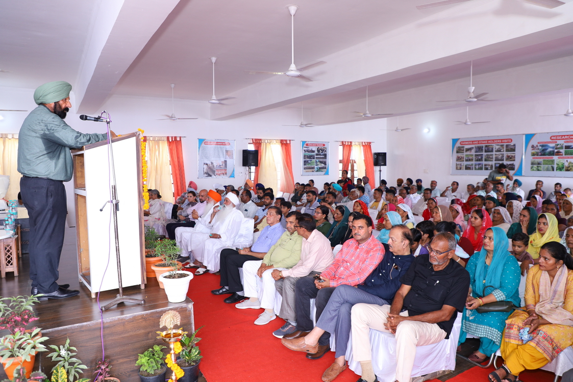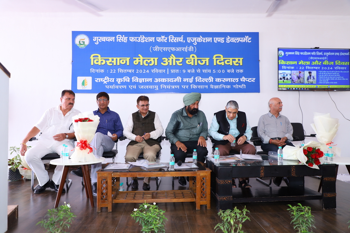 A Kisan Mela and Beej Diwas was organized at the Gurbachan Singh Foundation for Research, Education and Development (GSFRED), at its research centre, Karnal on September 22, 2024. The function was organized to share agricultural technologies and innovations developed at GSFRED for the welfare of the farmers. Seeds of high yielding, climate smart, pest resistant, new varieties of wheat DBW 327, DBW 370, DBW 371, DBW 372, WH 1270, RS 1, PBW 826, PBW 872, HI 1653, HI 1654, HD 3385, HD 3406, were distributed to the visiting farmers. Ten kg seed of these varieties was given to 20 small and marginal farmers to conduct demonstrations in their fields for location specific testing. An exhibition of innovative technologies developed at GSFRED was also organised. Dr. M.L. Madan (Padma Shri Awardee), Dr. S.K. Malhotra, VC, MPUAT, Karnal, Dr. P.C Sharma, Ex-Director CSSRI, Karnal and Dr. Randhir Singh, Ex ADG, Agriculture Extension ICAR participated as guests of honour.